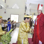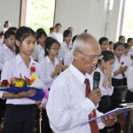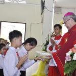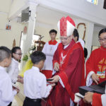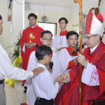 Thánh lễ kết thúc với phép lành trọng thể từ Đấng Bản Quyền giáo phận. Sau đó gia đình các em cùng chụp hình lưu niệm với Đức Cha và cùng dùng bữa cơm thân mật dưới nhà thờ Hầm.