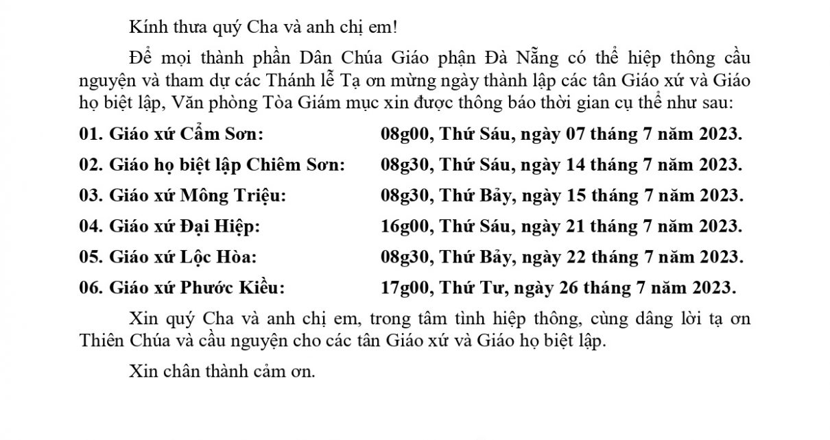 Kể từ sau ngày 16/6/2023, khi được Đấng Bản Quyền giáo phận quyết định nâng Giáo họ Chiêm Sơn thành Giáo họ biệt lập Chiêm Sơn, niềm mong mỏi, chờ mong ngày Đức Cha giáo phận về dâng Thánh lễ tạ ơn thành lập Giáo họ biệt lập của đoàn chiên nơi đây thật chẳng […]