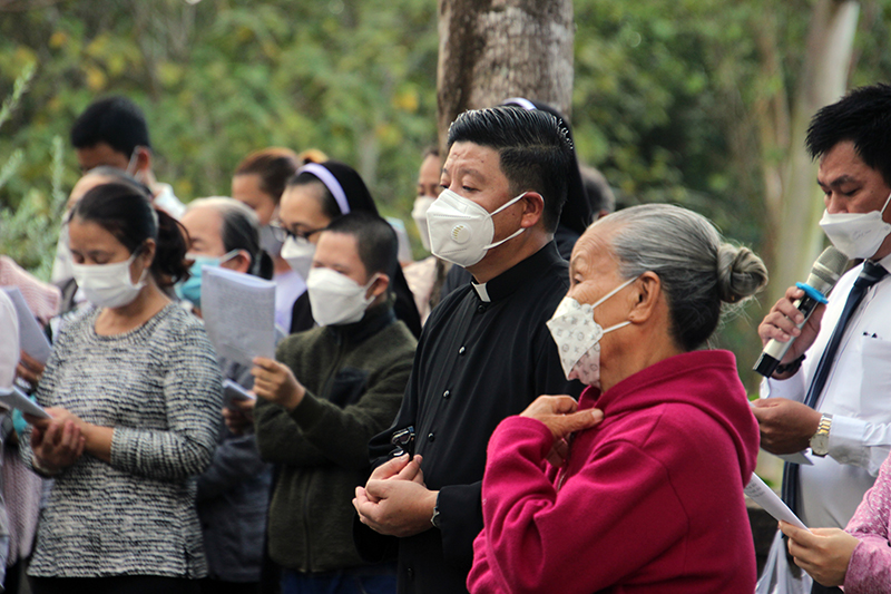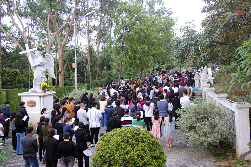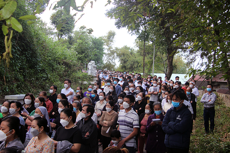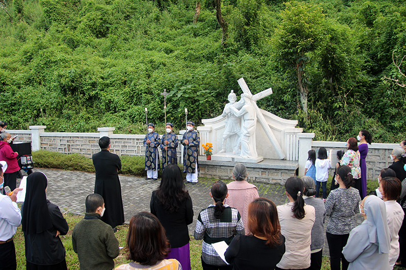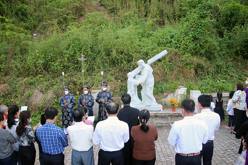 Như cha quản xứ Simon đã thông báo, lúc 16h45 chiều hôm nay – 02/3/2022, cộng đoàn dân Chúa xứ Trà cùng nhau quây quần bên các vị mục tử đáng kính của mình nơi đồi Can-vê, dưới chân linh đài Bửu Châu để cùng với Chúa Giê-su đi lại 14 chặng đàng Thánh Giá. Dẫu một số chặng đàng bị hư hỏng do mưa bão gây ra vào những năm trước và vẫn chưa có cơ hội để khắc phục, sửa chữa, nhưng điều đó không ngăn cản được tấm lòng của con dân xứ Trà đối với Thầy Giê-su của mình. Cứ mỗi chặng, mỗi người lại thấu cảm được Tình Yêu vô bờ bến của Thiên Chúa dành cho mình, dẫu mỗi người có quá nhiều điều bất xứng.