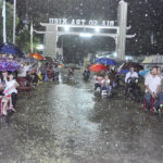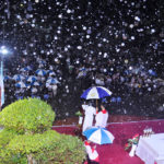Khi đoàn đồng tế, do Cha quản xứ chủ tế với 2 Cha quản xứ Thạnh Quang và Hòa Lâm cùng cha phó xứ, Cha Tùng người con của giáo xứ, tiến ra bàn thờ, thì bỗng chốc mây đen kéo về, sấm chớp đe dọa, báo hiệu một cơn mưa lớn đang đến gần. Nhưng quí Cha và cộng đoàn vẫn an nhiên tiến hành Thánh lễ. Vài phút sau đó cơn mưa ập đến, nhưng không ai nao núng, họ chỉ tạm dùng dù, áo mưa để có thể tiếp tục tham dự Thánh lễ. Các em giúp lễ, các anh chị đọc sách vẫn bình thản đi dưới mưa mà không quan tâm mưa ướt. Nhìn chung, tất cả cộng đoàn đều chú tâm và sốt sắng hiệp dâng Thánh lễ.