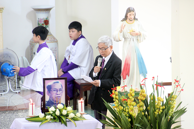 Trước khi kết thúc Thánh lễ, vị đại diện gia đình linh tông huyết tộc của Cha cố Phê-rô đã ngỏ lời cảm ơn đến Cha Giám đốc TTTM Trà Kiệu, Cha Hạt trưởng hạt Trà Kiệu, quý Cha đồng tế, quý soeur, quý chức trong Hội đồng mục vụ giáo xứ, giáo khóm, các ban ngành đoàn thể, ca đoàn Cecilia và cộng đoàn dân Chúa đã hiệp dâng Thánh lễ cầu nguyện cho Cha cố Phê-rô. Ông cũng xin Cha cố thương cầu nguyện cho tất cả mọi người để biết sống đẹp ý Chúa.