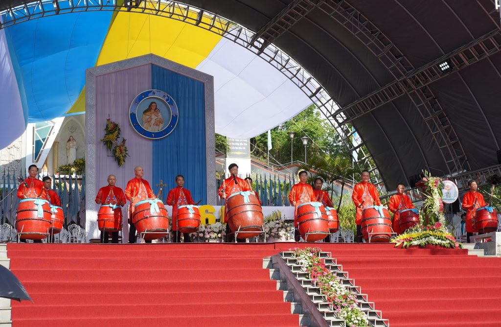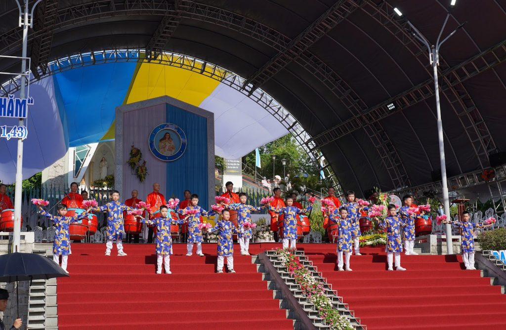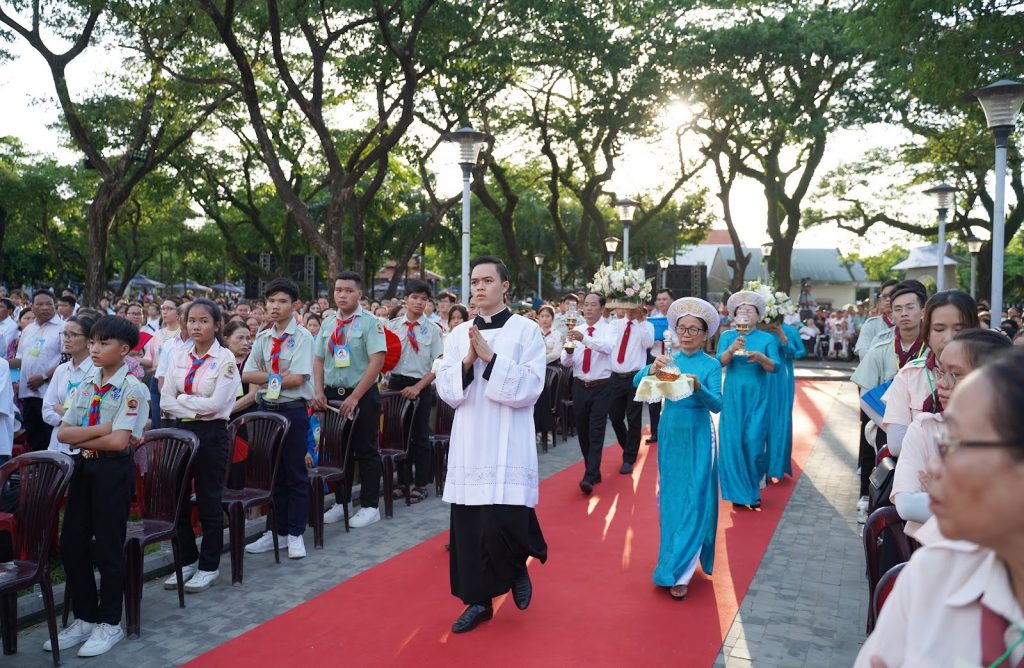 Đúng 15g45, cộng đoàn bắt đầu đọc kinh và múa khai mạc. Thánh lễ bắt đầu vào lúc 16g15.