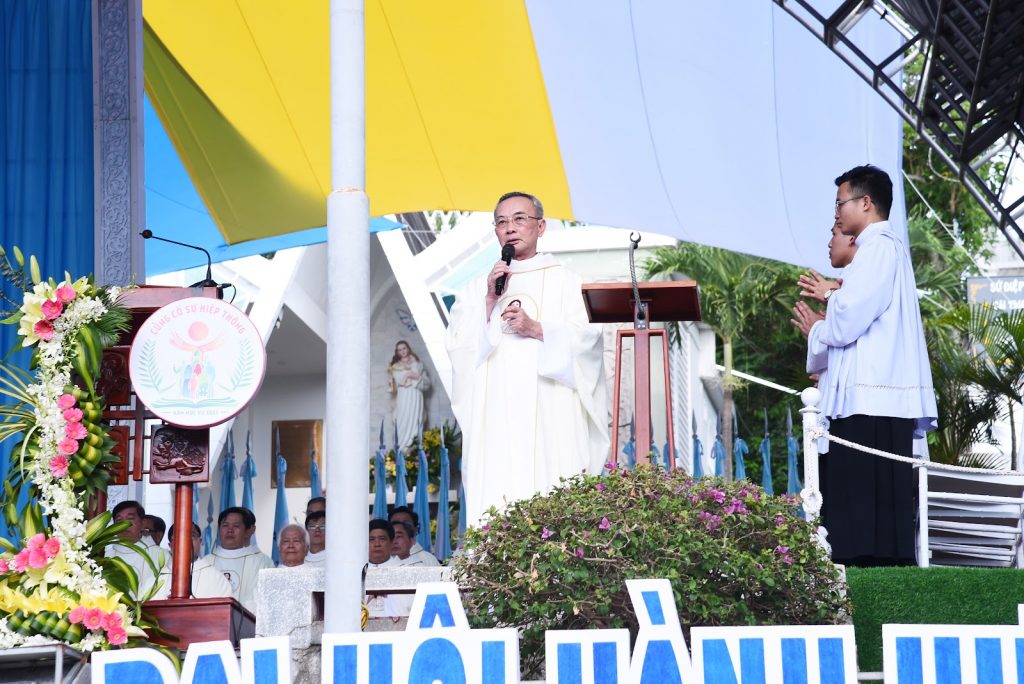 Trong bài giảng lễ, Đức Cha Giuse Châu Ngọc Tri chia sẻ: Năm nay, chúng ta mừng 60 năm thiết lập Giáo phận. Như lời Đức Cha Anphongsô đã nói: “Chúng tôi là những người đã trải qua những biến cố thăng trầm của Giáo phận, những gian nan thử thách trên mảnh đất thân yêu này. Chúng tôi đã không tưởng tượng được rằng sẽ có ngày Đại hội Thánh mẫu Trà Kiệu có thể đông đảo, tưng bừng, vui vẻ như hôm nay. Bài giảng của Đức Cha Giuse mang tâm tình sâu lắng của một người con xa xứ, Ngài nhắc nhở rằng: “Không có gì mà Chúa không làm được – chúng ta phải tin như thế. Khi sống đức tin, đối diện với bao nhiêu thử thách, chúng ta phải xác tín vào tình yêu quan phòng của Chúa qua lời cầu bầu của Đức Mẹ. Đừng ai nản lòng, đừng ai thất vọng, đừng ai tuyệt vọng trước những khó khăn, thử thách, nghịch cảnh trong đời sống , hãy tin tưởng vào quyền năng của Thiên Chúa. “Với Chúa không có gì là không thể”. Chúa sẽ làm tất cả qua tay Mẹ!”