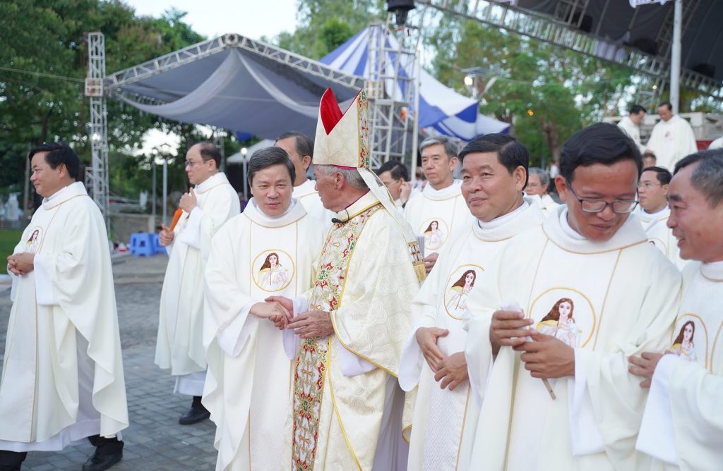 Đức Cha Anphongsô gửi lời chào đến toàn thể cộng đoàn dân Chúa, Ngài bày tỏ niềm vui và hân hoan khi được quay về với Giáo phận nhà. Ngài nói: chúng tôi bao gồm Đức Cha Giáo phận Lạng Sơn xa xôi, được quay về đất Mẹ để tạ ơn Thiên Chúa và Đức Mẹ vì đã ban muôn hồng ân cho Giáo phận Đà Nẵng thân yêu, và ban cho Giáo phận nhiều tấm gương truyền nhân anh dũng sống đức tin sáng ngời. Chúng ta cầu nguyện cho nhau để cùng noi gương các Ngài sống đức tin kiên vững của người tín hữu ở trần gian này.