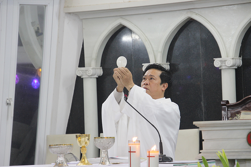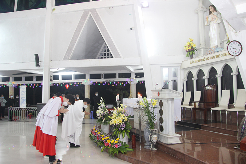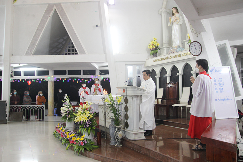 Mở đầu Thánh lễ, cha G.B ngỏ lời chào đến cha giám đốc Simon, quý cha phụ tá, thầy xứ, quý soeurs, quý hội đồng mục vụ giáo xứ cùng toàn thể cộng đoàn phụng vụ. Cha G.B ngỏ lòng biết ơn đến cha giám đốc Simon vì đã cho phép ngài về dâng Thánh lễ tạ ơn Thiên Chúa và Mẹ Trà Kiệu hôm nay. Ngài mời gọi cộng đoàn phụng vụ cùng hiệp ý với ngài trong Thánh lễ hôm nay để tạ ơn Chúa, Mẹ Trà Kiệu vì muôn ơn lành tuôn đổ trên ngài, cũng như cầu nguyện cho giám đốc cùng tất cả mọi thành phần trong giáo xứ được mạnh khỏe, bình an và cầu nguyện cho các linh hồn ân, thân nhân trong giáo xứ.