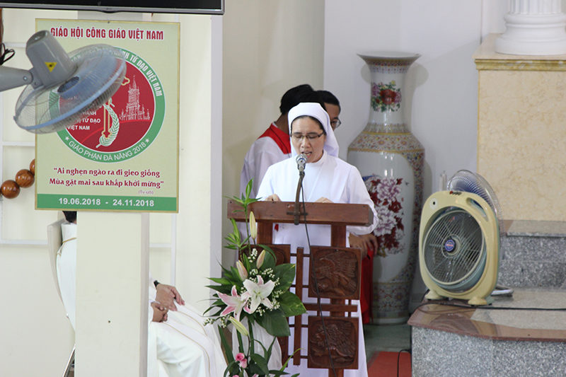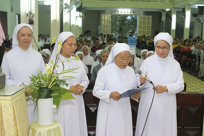 Sau đó, sơ Josephine đại diện cho các sơ mừng lễ hôm nay ngỏ lời tạ ơn Chúa, tri ân sự ưu ái của quý cha, mẹ giám tỉnh, quý sơ, quý ân thân nhân cùng cộng đoàn phụng vụ, các ban ngành đoàn thể trong giáo xứ… đã dành cho quý sơ và xin mọi người tiếp tục cầu nguyện cho.