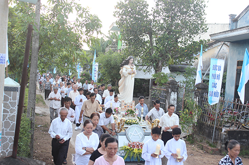Kết thúc Thánh lễ, mọi người theo bước Thánh giá, đèn hầu để cùng kiệu Mẹ về lại nhà thờ chính trong lời kinh Mân Côi quen thuộc. Kết thúc cuộc rước kiệu, cha chủ sự Gioan chúc phúc lành trên mỗi người.