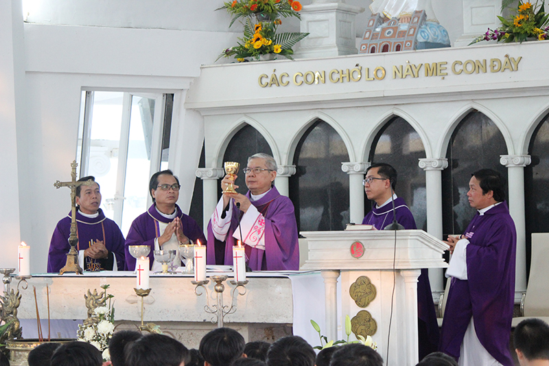 Sau phần công bố Tin Mừng Gioan (Ga 7, 40 – 53) từ cha phó Giuse, Đức Cha đã chia sẻ cùng cộng đoàn phụng vụ về sự tự do của con người mà Thiên Chúa luôn tôn trọng. Tự do chọn lựa tin hay không tin, yêu hay ghét, thuộc về Đức Kitô hay không thuộc về Đức Kitô, tha thứ hay thù hận…. Sự tự do chọn lựa đó luôn giao thoa trong mọi khoảnh khắc của đời người. Nếu đức tin mạnh, sẽ dễ dàng chấp nhận chọn lựa yêu thương, tha thứ… Nhưng nếu cái tôi quá lớn sẽ khó khăn khi chọn lựa những điều đó như trường hợp các thượng tế và biệt phái trong bài Tin Mừng hôm nay. Đáng ngạc nhiên là sự thù hận lại đến từ những người giảng dạy luật nhưng Thiên Chúa luôn tôn trọng sự tự do của họ. Giữa muôn sự lựa chọn, Đức Kitô vẫn luôn thinh lặng để mọi người tự do chọn lựa cho quyết định của mình. Liên hệ đến hôm nay, mỗi người chúng ta đã tự do chọn lựa như thế nào, để yêu thương, tha thứ, khiêm nhường, hiệp nhất hay là phán xét cay độc, nói hành nói xấu… khiến người khác đau khổ. Liệu chúng ta có nhận ra sự hiện diện của Chúa trong những tương quan giữa mình với tha nhân, với Giáo Hội để chọn lựa những giá trị tốt đẹp giữa những thử thách của cuộc sống. Xin Chúa cho mỗi người biết sống quảng đại, tha thứ và xin Chúa cho ta đủ can đảm để đón Đức Maria về nhà mình, để nhờ Mẹ ta can đảm hơn trong đời sống đạo hôm nay hầu trao ban ơn Chúa cho anh chị em. Hãy như Nicôđêmô: “Lề Luật của chúng ta có cho phép kết án ai, trước khi nghe người ấy và biết người ấy làm gì không?”, mỗi người hãy biết chọn lựa đối thoại với nhau để xây dựng đời sống cộng đoàn hiệp nhất, chứ không gây hận thù, chia rẽ.