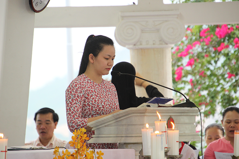 Sau phần công bố Lời Chúa từ cha Giuse, cha Tổng đã giúp cộng đoàn suy niệm về các nội dung: (i) tấm gương khiêm nhường, bé mọn của Đức Maria; (ii) lời tạ ơn Chúa của ông Gióp dẫu ở trong hoàn cảnh bất hạnh, trái ý mình và (iii) việc thực hành lần chuỗi Mân Côi. Từ đó, ngài mời gọi cộng đoàn hãy bắt chước, thực hành những điều trên để có thể đón nhận tất cả mọi điều trong cuộc sống hầu tên mình được ghi trên thiên quốc.