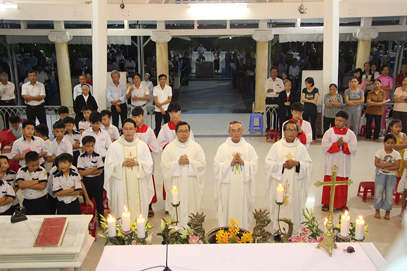 Sau khi hết giãn cách xã hội vì dịch bệnh Covid-19, theo thông lệ đã định, chiều thứ Bảy hàng tháng Đức Cha Giuse sẽ về dâng Thánh lễ hành hương nơi linh đài Bửu Châu, nhưng hôm nay – thứ Bảy đầu tháng Mười, vì lý do mục vụ nên Đức Cha Giuse không thể về được và thay vào đó là sự hiện diện của cha Tổng Đại Diện Bonaventura, và đồng tế với ngài có cha Chánh văn phòng Phao-lô, cha Giuse – người con của giáo xứ và cha quản xứ Gioan.