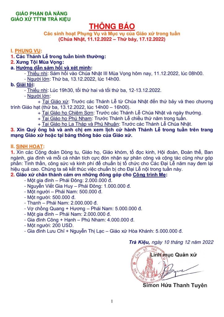GIÁO PHẬN ĐÀ NẴNGGIÁO XỨ TTTM TRÀ KIỆU THÔNG BÁO Các sinh hoạt của Giáo xứ trong tuần (Chúa Nhật, 18.7.2021 – Thứ bảy, 24.7.2021) I. PHỤNG VỤ: 1. Thánh Lễ trong tuần: Vì dịch bệnh khá phức tạp, nên số lượng tham dự Thánh Lễ không quá 50 người. Xin ngồi giãn cách, […]