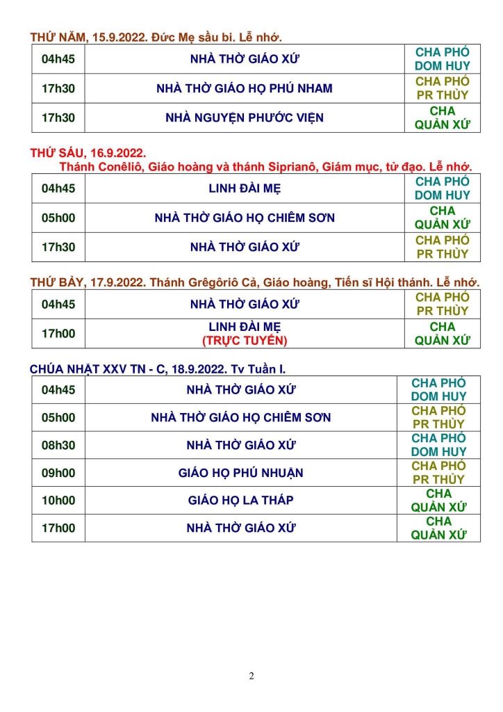Thông Báo: Các Sinh Hoạt Trong Giáo Xứ Từ Ngày 31/01 – 06/02/2021