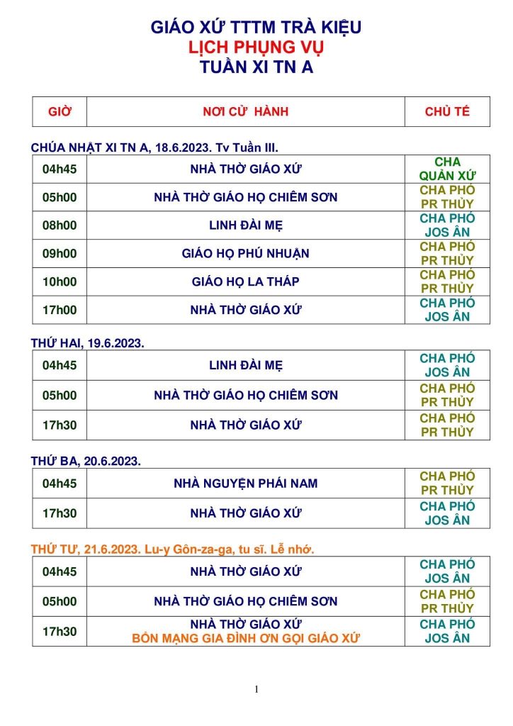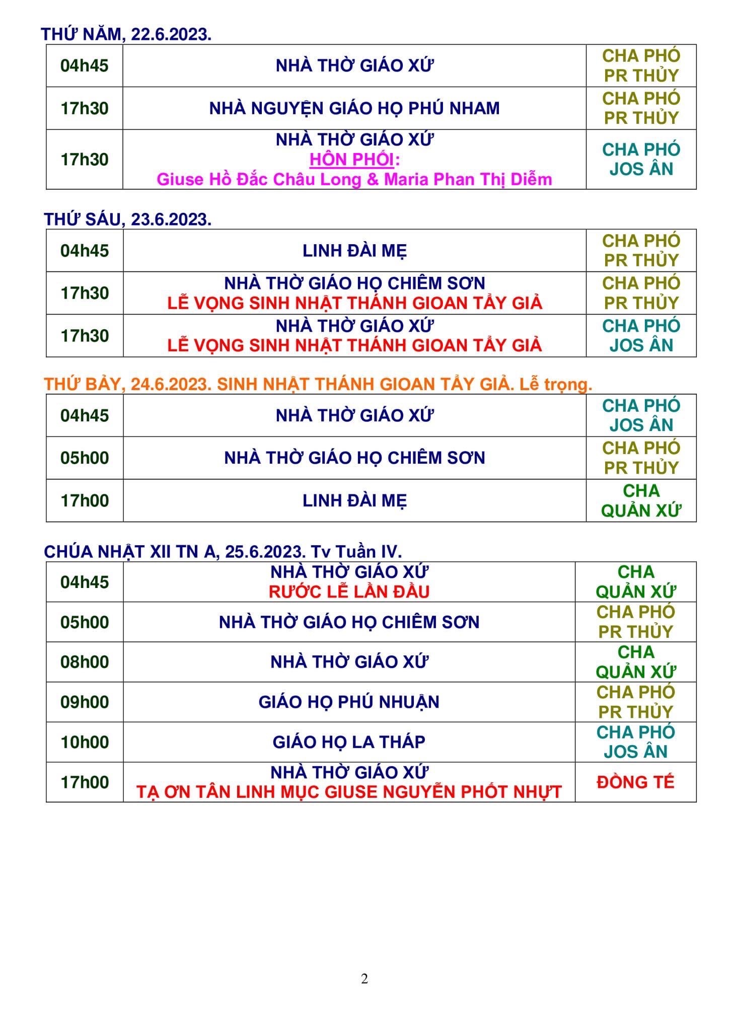 Thông Báo: Các Sinh Hoạt Trong Giáo Xứ Từ Ngày 23/7-30/7/2017