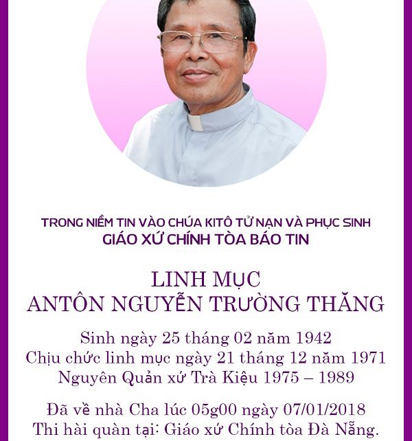Tin Buồn: Linh Mục Antôn Nguyễn Trường Thăng