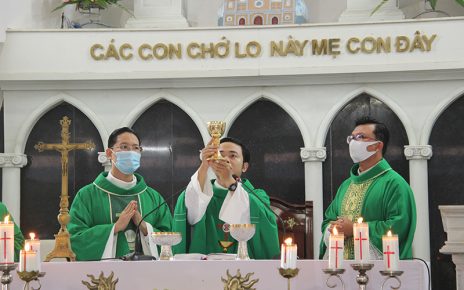 Tiếp đó, ĐGM đã chủ sự Thánh lễ trọng thể. Trong phần mở đầu, Ngài mời gọi cộng đoàn vui mừng trong ngày lễ Đức Me thăm viếng bà Elisabet; cầu nguyện cho tất cả các gia đình và gia đình Giáo phận; cầu cho hòa bình trên thế giới, cách riêng cho đất nước Việt Nam thân yêu; cầu cho các Nhà Lãnh đạo được ơn khôn ngoan để tìm ra các giải pháp hòa bình cho nền hòa bình Đất nước; mỗi người Giáo dân sống theo tinh thần thư chung của Hội Đồng Giám Mục Việt Nam, mỗi người cùng chung tay góp phần vào công việc bảo vệ chủ quyền đất nước bằng việc làm cụ thể.