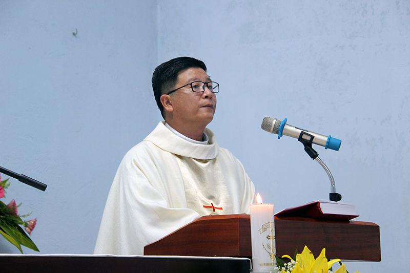 Trong bài giảng của mình, cha Simon chia sẻ về gương mẫu đức tin tuyệt vời của Đức Maria khi đáp lời “Xin Vâng” trước lời mời gọi của Thiên Chúa. Ngài cũng đặt câu hỏi cho mỗi người: nếu Thiên Chúa mời gọi chúng ta cộng tác với Ngài, liệu chúng ta sẽ như thế nào? Từ đó, mời gọi mỗi người hãy mở lòng mình để Chúa ngự vào và với sự vâng phục, cộng tác của mình, ước mong mỗi người sẽ mang Chúa Giê-su đến với hàng xóm, với những người xung quanh.