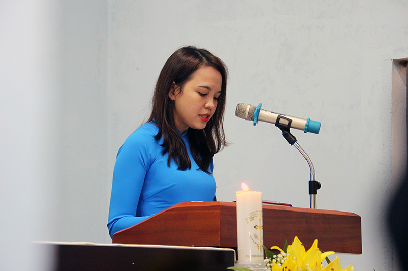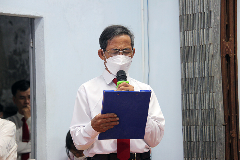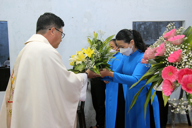 Trước khi kết thúc Thánh lễ, vị đại diện giáo họ ngỏ lời cảm ơn đến cha Simon đã luôn quan tâm đến giáo họ, đặc biệt là tạo điều kiện để giáo họ đọc kinh mỗi tối thứ Bảy, gẫm đàng Thánh giá mỗi thứ Tư, dâng Thánh lễ mỗi chiều thứ Năm… Cha cũng đã tạo điều kiện để xây dựng 2 đoàn thể Gia Trưởng và Hiền Mẫu và ngày hôm nay cũng là ngày ra mắt giới Hiền Mẫu nơi giáo họ. Ông cũng ngỏ lời cảm ơn đến Hội đồng mục vụ giáo xứ, giáo khóm, quý ân thân, cũng như bà con trong giáo họ đã đóng góp công sức và hiệp dâng Thánh lễ chiều nay.