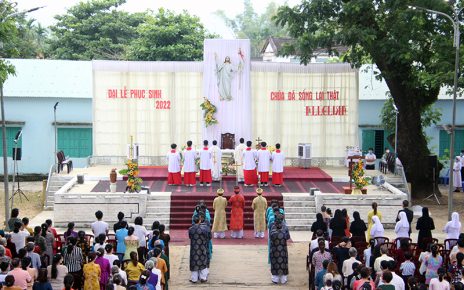 Sáng sớm hôm nay – mồng Bốn Tết Nhâm Dần, cộng đoàn dân Chúa xứ Trà cùng tề tựu nơi quảng trường Mân Côi để cùng với cha Simon, quý cha, quý thầy, quý soeurs, các bạn trẻ trong gia đình ơn gọi tham dự nghi thức làm phép và rước nến lên linh đài Bửu Châu, để hiệp dâng Thánh lễ Dâng Chúa Giê-su trong đền thánh – ngày cầu nguyện cho đời sống thánh hiến.
