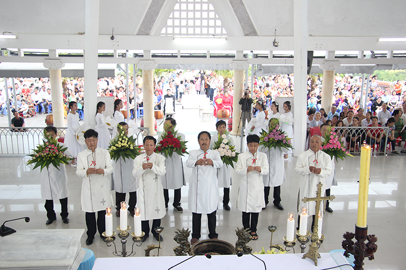 Trước khi kết thúc Thánh lễ, cha Simon ngỏ lời cảm ơn cha Tổng, cha Giuse – quản lý Tòa Giám Mục (là người con của giáo xứ), đã ưu ái dành những tình cảm tốt đẹp của mình khi về dâng Thánh lễ hôm nay và cầu Chúa ban cho các ngài luôn được Bình An và tràn đầy lòng sốt mến. Cha Simon cũng ngỏ lời cảm ơn quý khách hành hương đã về hiệp dâng Thánh lễ chiều nay và ước mong mọi người luôn được thăng tiến trong đời sống đạo. Ngài cũng không quên ngỏ lời cảm ơn quý soeur dòng Thánh Phao-lô, quý ông bà, các em thiếu nhi trong đội dâng vũ, các ban ngành đoàn thể… đã hy sinh, cộng tác với giáo xứ để cộng đoàn phụng vụ hôm nay có được tâm tình tạ ơn Mẹ cách sốt mến. Cha Simon ước mong mỗi người hãy luôn sống tâm tình con thảo với Mẹ trong tháng Hoa này bằng đời sống đạo đức của mình, nhất là qua những việc đạo đức truyền thống trong giáo xứ, như đọc kinh trưa tại linh đài Bửu Châu lúc 12h00 và kinh tối tại mỗi gia đình lúc 19h30 hàng ngày.