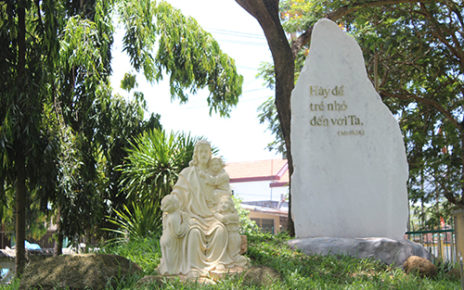 Chiều hôm nay, cộng đoàn dân Chúa cùng nhau tề tựu dưới chân đồi Mẹ để cùng nhau tham dự buổi rước kiệu Á Thánh Anre Phú Yên, cũng như tham dự Thánh lễ mừng kính ngài. Dưới sự hướng dẫn của quý ban đại diện giáo khóm Bắc, đoàn rước rập ràng trong lời kinh và cùng nhau tiến về đền thờ Thạnh Quang – nơi sẽ cử hành Thánh lễ mừng kính Á Thánh Anre Phú Yên – là vị Thánh bổn mạng mà giáo khóm Bắc đã chọn. Trong đoàn rước, tháp tùng bàn kiệu Á Thánh là những tà áo dài tím dịu nhẹ – một sắc màu đại diện cho các chị giáo lý viên trong giáo xứ, như hòa vào bức tranh rực rỡ mừng kính Á Thánh Anre hôm nay, bởi ngài cũng chính là bổn mạng mà các anh chị giáo lý viên chọn lấy cho mình.