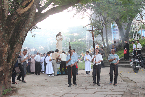 Kết thúc Thánh lễ, mọi người theo bước Thánh giá, đèn hầu để cùng kiệu Mẹ về lại nhà thờ chính trong lời kinh Mân Côi quen thuộc. Kết thúc cuộc rước kiệu, cha chủ sự Gioan chúc phúc lành trên mỗi người.