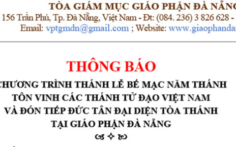 3/ Ban thánh nhạc giáo phận sẽ tổ chức khóa NHAC LÝ CƠ BẢN và ĐÁNH NHỊP tại Trung tâm mục vụ từ ngày thứ hai, 10/7 – thứ sáu, 14/7/2017. Những ca viên nào muốn tham dự xin đăng ký nơi anh Thiên, ca trưởng ca đoàn Tử Đạo.