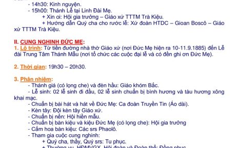 Thứ 4: 04h45 và 17h00 (Đền Mẹ Tri Ân)