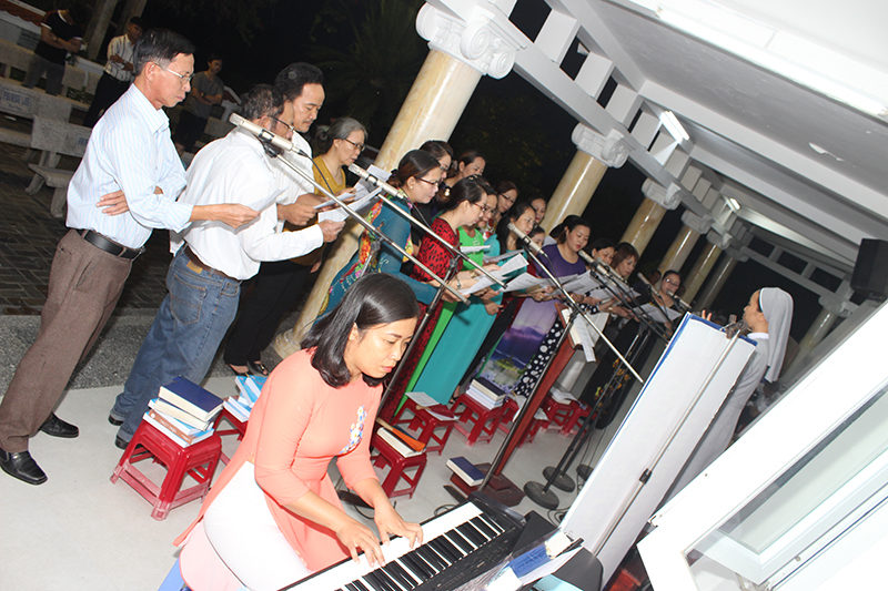 Từ dạo tháng 7 đến giờ, vì Đức Cha bận rộn với công việc mục vụ của giáo phận, nên mỗi chiều thứ 7 đầu tháng, đoàn con đất Mẹ Trà Kiệu, cũng như quý khách hành hương dường như thiếu đi một cảm giác gì đó rất thân thương. Chiều hôm nay, thứ 7 đầu tháng 11, những tưởng sẽ cảm giác hụt hẫng ấy sẽ lặp lại, nhưng không, bóng dáng vị Cha chung thân yêu đã xuất hiện tại linh đài Bửu Châu, lấp đầy nỗi ngóng trông nơi đoàn chiên xứ Trà. Đồng tế với Đức Cha Giuse chủ tế, còn có cha Phaolô – Chánh văn phòng TGM, cha phó xứ Antôn và cha Giuse đang tạm giúp mục vụ tại giáo xứ. Thật là một cảm giác khó tả nhưng tràn đầy Bình An như lời chúc đầu lễ của Đức Cha cầu chúc cho mỗi người. Ngài mời gọi mỗi người hãy cảm nhận sự hiệp nhất, yêu thương đang được thể hiện nơi linh đài này để dâng lên Thiên Chúa lời cảm tạ tri ân. Hãy hướng lòng lên Mẹ để xin Mẹ cho mỗi người biết sống đáp trả ơn gọi như Mẹ. Dịp tháng 11 này, Đức Cha cũng mời gọi mỗi người hướng đến các đẳng trong sự hiệp thông để cầu nguyện cho các ngài và cho mỗi người để trở thành dấu chỉ Tình Yêu giữa đời.