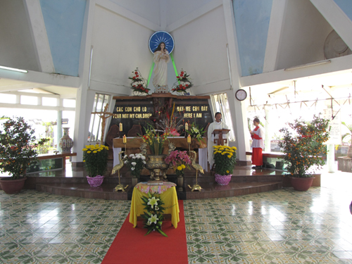 Đầu thư con xin chúc quý ân nhân cùng gia quyến một năm mới an lành, hạnh phúc và tràn đầy ơn Chúa ban qua lời chuyển cầu của Đức Mẹ Trà Kiệu.